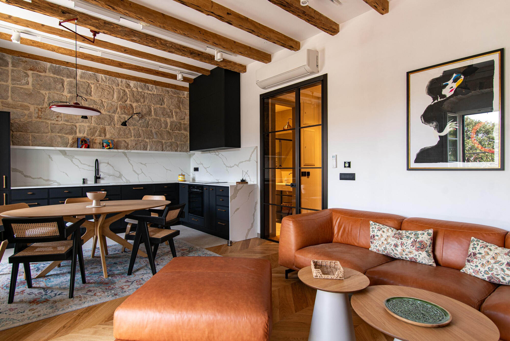 This beautifully designed apartment offers the perfect blend of comfort, style, and location. Featuring two spacious bedrooms and a bright open-plan living area, the space flows seamlessly onto a private balcony overlooking the new Dubrovnik marina — ideal for morning coffee or evening relaxation. The apartment is thoughtfully designed with a refined, modern aesthetic, complemented by a fully equipped large kitchen perfect for longer stays or home dining. A dedicated yoga/relaxation room adds a unique touch, creating a peaceful corner to unwind after a day of exploring.